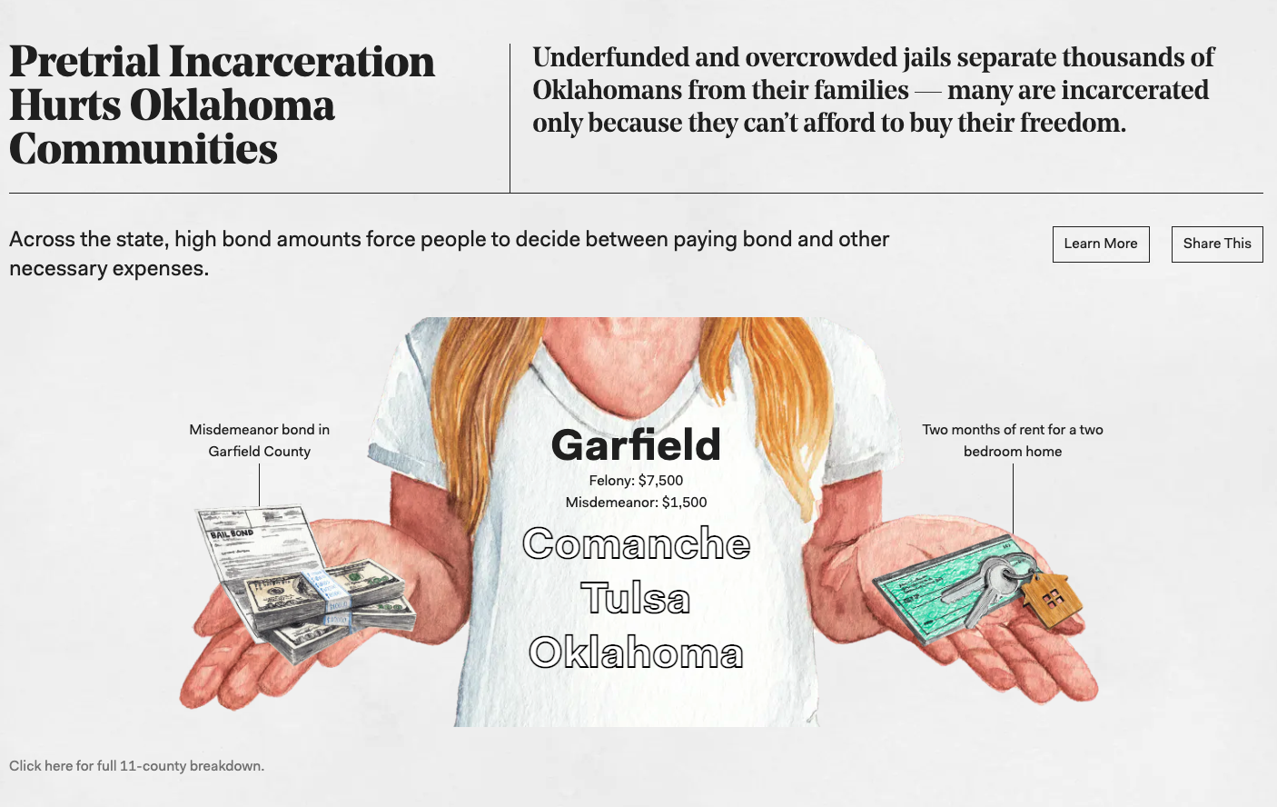 FWD.us had extensive original research on Oklahoma’s criminal justice system to share with people who could use their data to make a difference. To make a complex report engaging and digestible to conservative policymakers, justice-minded reformers, and people affected by the criminal justice system, FWD.us knew that they needed creative partners who would frame their research in a fresh, approachable, and respectful way.